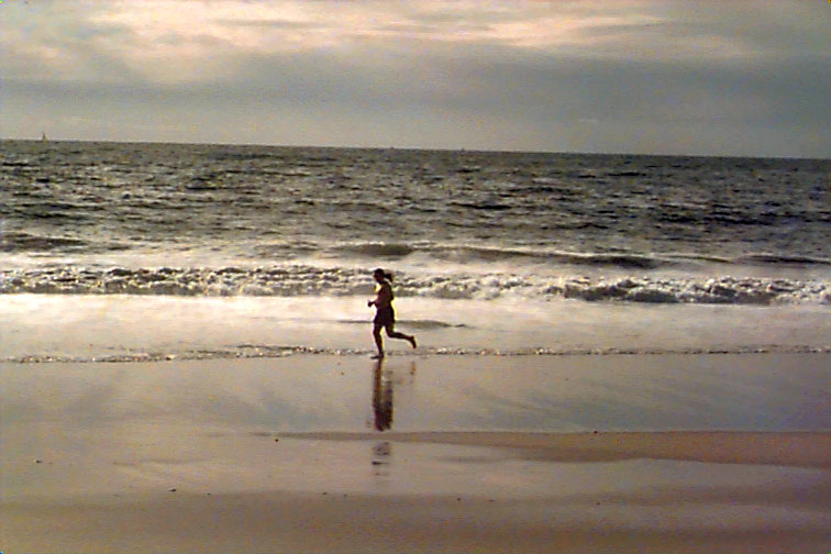 the kount used to jog through the college hill park ...but he's not near the park so the next best thing is dodging sea gulls ... here is the kount jogging his 2 miles along the playa del ray beach ... of course we know he is in search of beached whales.