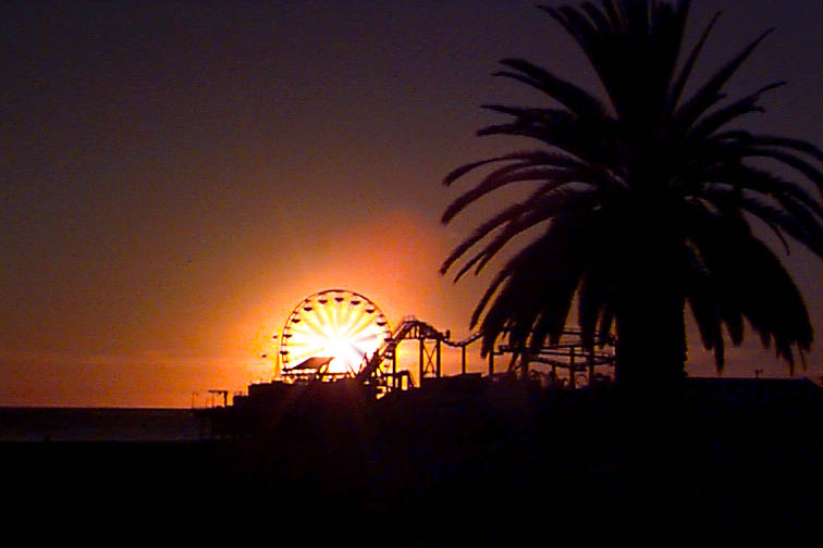 Santa Monica pier at sunset. The Santa Monica pier is basically