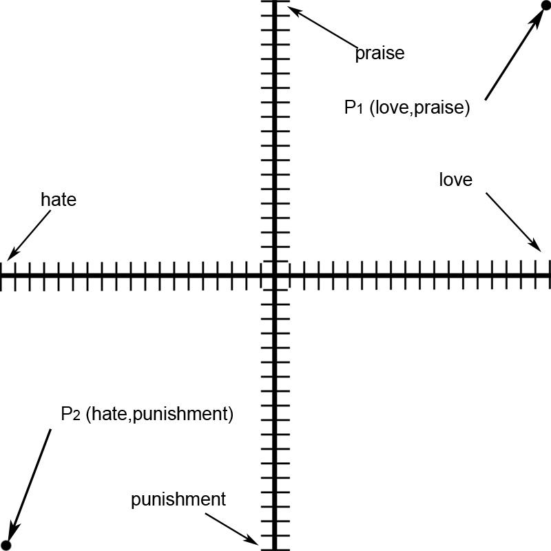 P1(love,praise) and P2(hate,punishment) in two dimensions. But