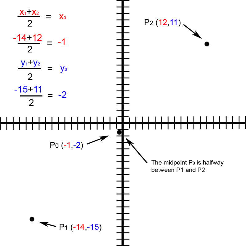 of the equation (y1 + y2)/2 = y0 we get (-15 + 11)/2 = -2 therefore: