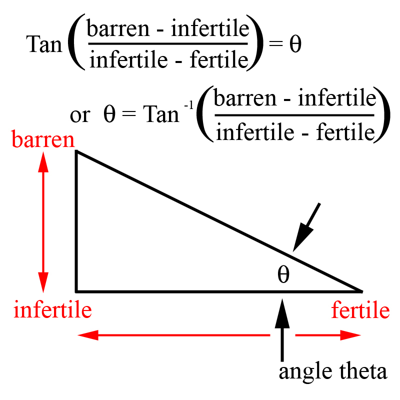 If we want to know the angle of theta we have to take the inverse tangent of y/x or the inverse tangent of (barren - infertile)/(fertile - infertile) (see figure 18)